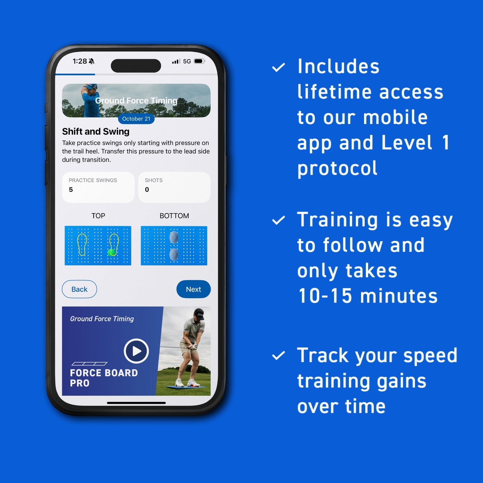The Force Board Pro is a dual sided adaptive training platform. Improve balance and stability and increase ground reaction forces with the Force Board platform and attachments. Use the Force Board Pro with the SuperSpeed App for a guided training experience for faster swing speeds and longer drives.